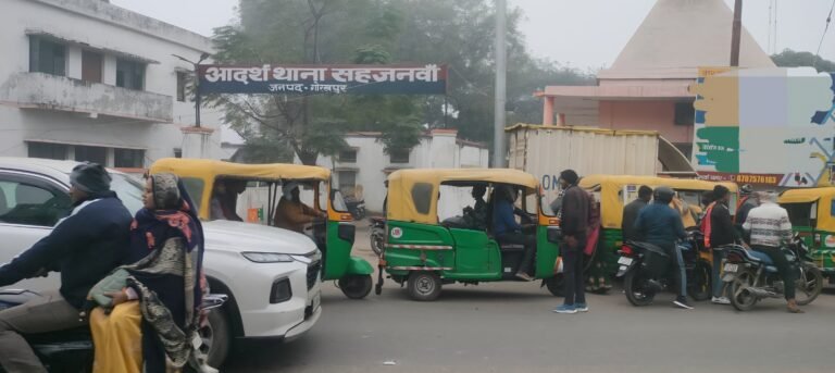 स्थानीय लोगों के अनुसार थाना सहजनवा के मुख्य गेट के ठीक सामने ऑटो चालकों का रोजाना जमावड़ा लगा रहता है। चालक बीच सड़क पर ही ऑटो खड़ा कर सवारियां भरने लगते हैं, जिससे हर समय जाम की स्थिति बनी रहती है। हैरानी की बात यह है कि यह सब पुलिस की मौजूदगी में हो रहा है, इसके बावजूद जिम्मेदारों द्वारा इन मनबढ़ ऑटो चालकों के खिलाफ कोई ठोस कार्रवाई नहीं की जा रही है।
