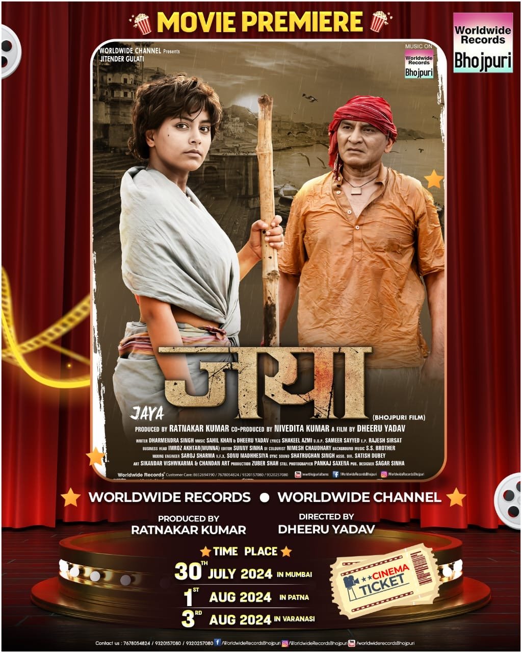 भोजपुरी इंडस्ट्री की बहुचर्चित भोजपुरी फिल्म जया जल्द ही सिनेमाघरों में दस्तक देने को तैयार है। इस फिल्म के रिलीजिंग डेट अब सामने आ चुकी है। जी हां कई दिनों से दर्शक इस फिल्म का बेसब्री से इंतजार कर रहे हैं। दर्शकों के इंतजार को खत्म करते हुए वर्ल्डवाइड रिकार्ड्स के एमडी और फिल्म मेकर रत्नाकर कुमार ने फिल्म के रिलीज की घोषणा कर दी है। भोजपुरी अभिनेत्री माही श्रीवास्तव और बॉलीवुड अभिनेता दया शंकर पांडे के अभिनय से सजी फिल्म जया 2 अगस्त को सिनेमाघरों में प्रदर्शन को तैयार है। इस फिल्म का प्रीमियर 30 जुलाई मुंबई, 1 अगस्त पटना और 3 अगस्त वाराणसी में किया जाएगा। वही 2 अगस्त को फ़िल्म जया पूरे भारत में एक साथ रिलीज होने जा रही है। जिसकी पूरी तैयारी कर ली गई है। 30 जुलाई को मुम्बई के फन रिपब्लिक में प्रीमियर किया जाएगा।