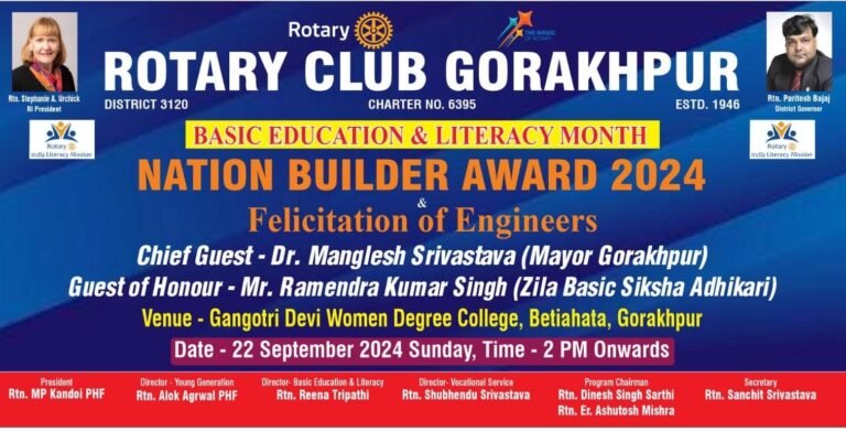 रोटरी क्लब गोरखपुर द्वारा आज गंगोत्री देवी महिला महाविद्यालय, अलहदादपुर निकट मुंशी प्रेमचंद पार्क के सभागार मे दोपहर 3 बजे से 5 बजे