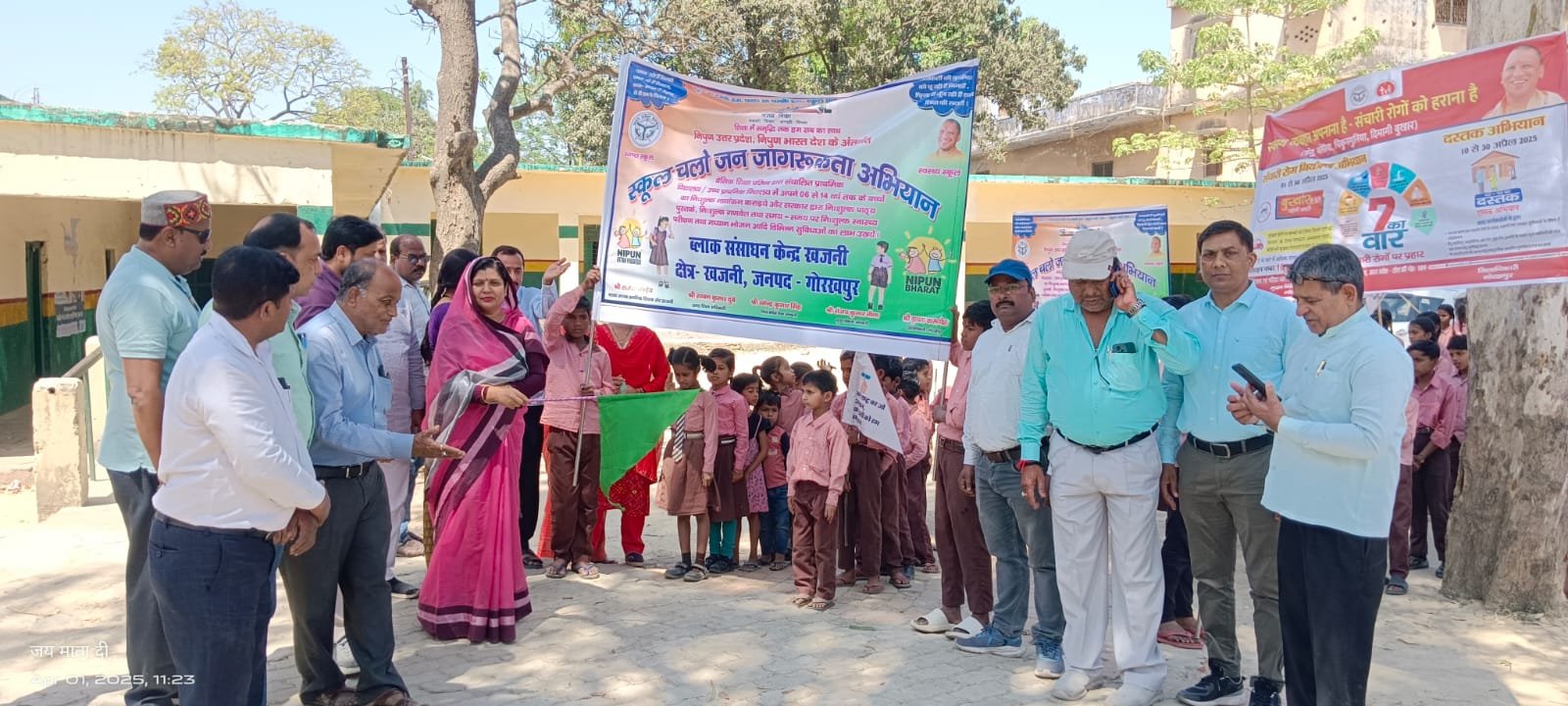 खजनी तहसील के अंतर्गत ग्राम सभा रुद्रपुर में स्थित बीआरसी कंपोजिट उच्च प्राथमिक विद्यालय में मंगलवार को स्कूल चलो अभियान एवं संचारी रोग नियंत्रण जन जागरूकता रैली बच्चों ने निकाली रैली ब्लॉक प्रमुख खजनी अंशु सिंह ने स्कूल चलो अभियान के तहत हरी झंडी दिखाकर किया शुभारंभ रैली के माध्यम से बच्चों और शिक्षकों ने स्कूल चलो अभियान व संचारी रोग नियंत्रण के बावत जन-जन को जागरूक किया।