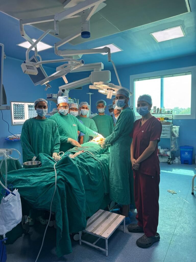 डॉ गौरव गुप्ता के साथ डॉ धर्मेन्द्र पीपल , डॉ मुकुल सिंह , डॉ रवि गुप्ता एवम जूनियर रेजिडेंट्स डॉ ऐश्वर्या , डॉ आदित्य , डॉ रज़ा ने इस जोखिम भरी सर्जरी को सफलता पूर्वक पूर्ण किया। किडनी का ये ट्यूमर पेट की प्रमुख नली इन्फीरियर वेना कावा से चिपका हुआ था तथा थोड़ा भी इधर उधर होने पर मरीज की ऑपरेशन टेबल पर ही रक्त स्राव से जान जाने का खतरा था । लेकिन इस सर्जरी को सर्जरी की टीम ने दक्षता से पूर्ण किया । इस किडनी ट्यूमर का साइज लगभग 30 cm था तथा वजन लगभग ३.५ किलो था ।