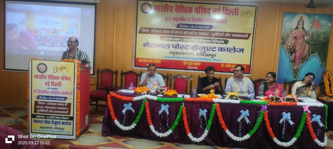 प्राचार्या,उदित नारायण पडरौना डॉ. ममता मणि ने कहा कि भारत-बांग्लादेश का सम्बन्ध सदैव से साझेदारी और सहयोगी रहा है और भारत इस भूमिका का निर्वहन करता रहेगा। कार्यक्रम की अध्यक्षता कर रहे छपरा विश्वविद्यालय के प्रो.राजेश नायक ने अपने उद्बोधन में कहा कि सांस्कृतिक अस्मिता बांग्लादेश के जन्म का आधार बना। एक छात्र आंदोलन वह था, जिसने बांग्लादेश को जन्म दिया और एक छात्र आंदोलन 2024 का है ,जिसने लोकतंत्र को खतरे में डाल दिया। इसके पीछे वजह बांग्लादेश का इस्लामीकरण है। यह भारत के लिए चिंता का विषय है। इसके लिए समग्र रणनीति बनाने की जरूरत है।