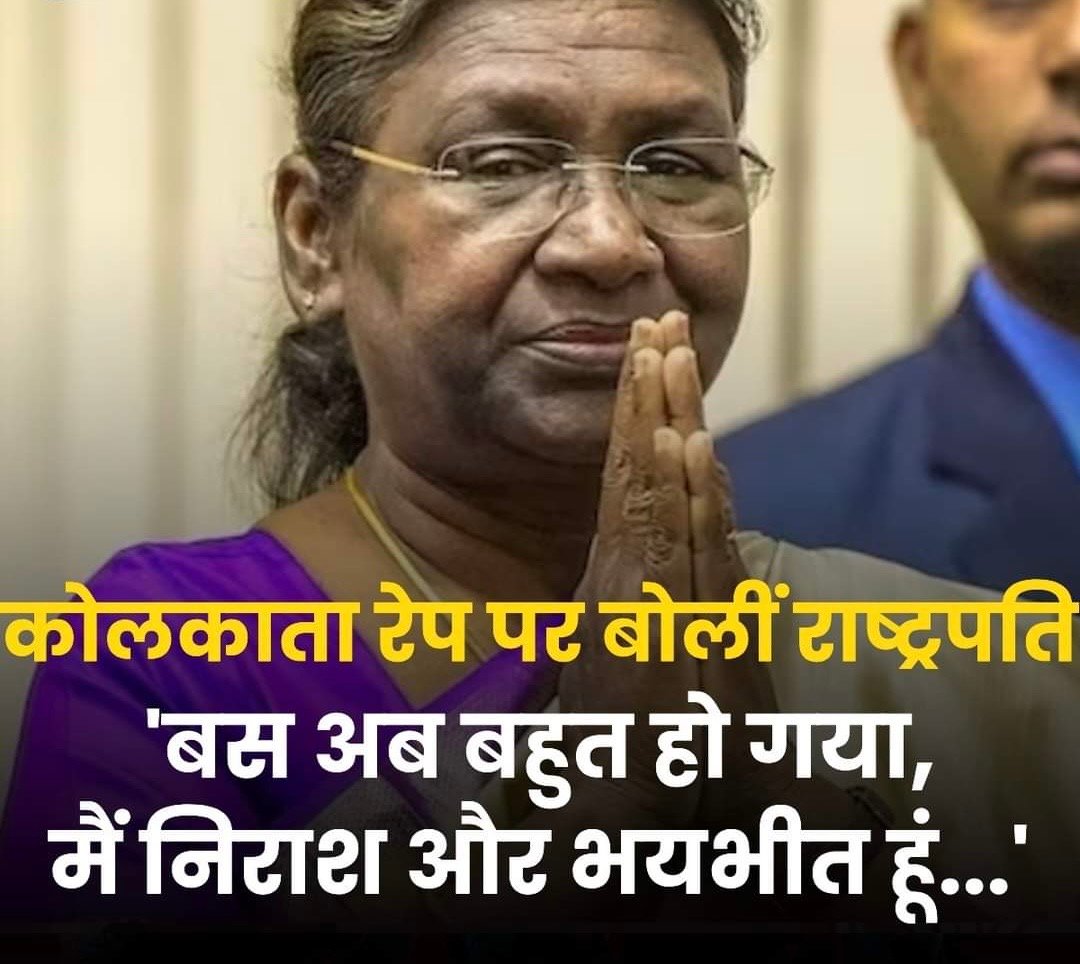 कोलकाता के आरजी कर मेडिकल अस्पताल में 31 साल की डॉक्टर से रेप और बलात्कार मामले पर राष्ट्रपति द्रौपदी मुर्मू का बयान आया है. उन्होंने कहा कि अब बहुत हो गया है. वह इस पूरी घटना से निराश और भयभीत हैं