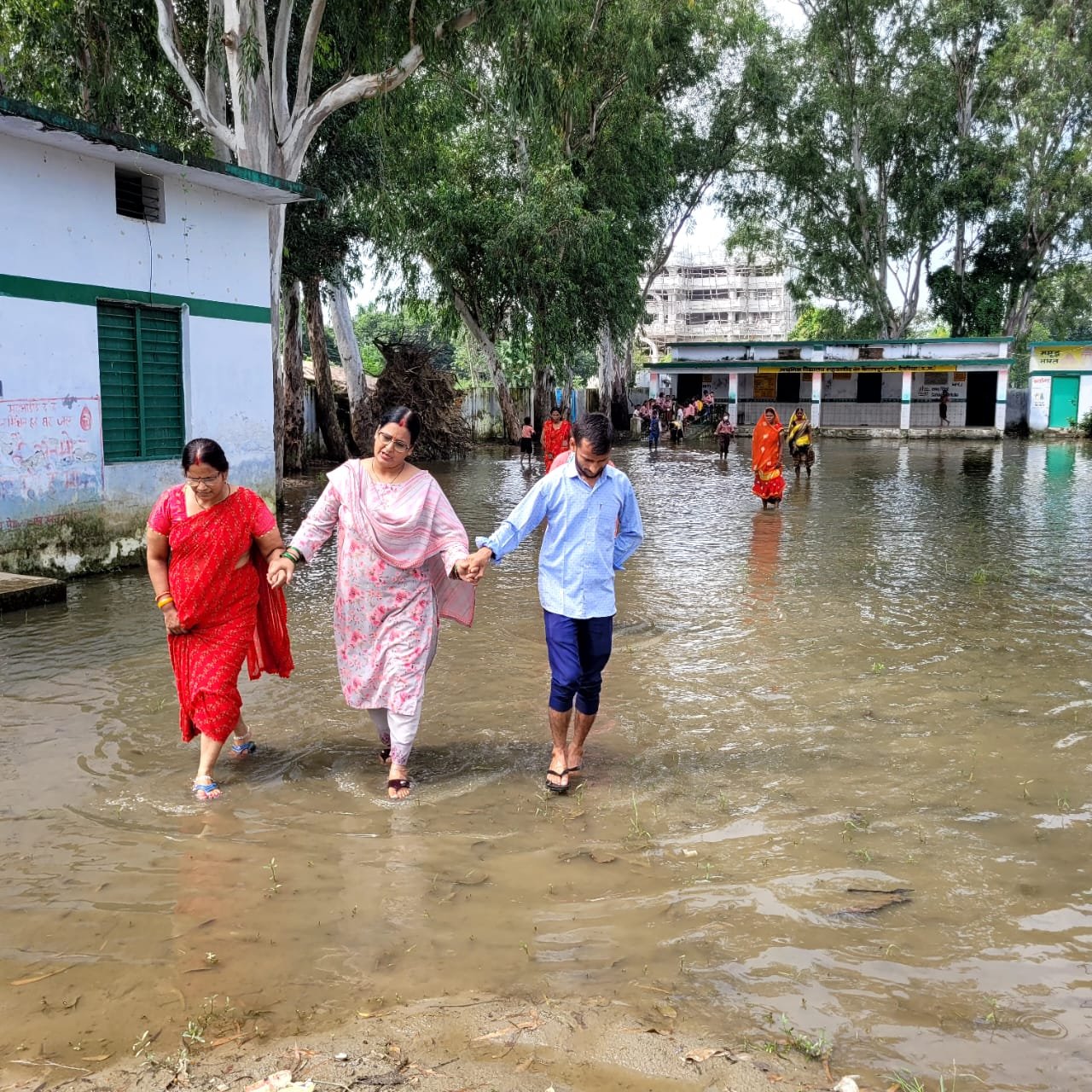 पूरे विद्यालय परिसर में लगा पानी