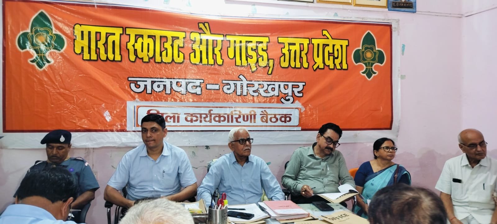 भारत स्काउट और गाइड गोरखपुर की आवश्यक बैठक संपन्न गोरखपुर।भारत स्काउट और गाइड उत्तर प्रदेश गोरखपुर के जिला कार्यकारिणी की बैठक जिला मुख्यायुक्त राम जन्म सिंह की अध्यक्षता में अयोध्या दास स्काउट कुटीर में सम्पन्न हुई, बैठक में सर्वप्रथम स्काउट प्रार्थना किया गया, इसके बाद जिला सचिव रंजना राय ने प्रतिवेदन प्रस्तुत किया, कोषाध्यक्ष महेश कुमार सिंह ने आय-व्यय प्रस्तुत किया,डीओसी गाइड इशरत सिद्दीकी ने संगठन के कार्यों की रुपरेखा प्रस्तुत किया, डी टी सी स्काउट अजय कुमार सिंह एवं डी टी सी गाइड प्रतिमा शुक्ला ने प्रशिक्षण की आख्या प्रस्तुत करते हुवे बताया कि कस्तूरबा गाँधी आवासीय विद्यालय के 60 शिक्षिकाओं की बेसिक गाइड कैप्टन की ट्रेनिंग पूरे मंडल स्तर की गोरखपुर में सफलता पुर्वक कराया गया।