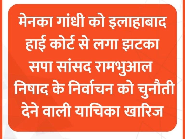 पूर्व बीजेपी सांसद मेनका गांधी को इलाहाबाद हाई कोर्ट की लखनऊ पीठ से लगा झटका, सुल्तानपुर से सपा सांसद रामभुआल निषाद के निर्वाचन को चुनौती देने वाली याचिका खारिज।