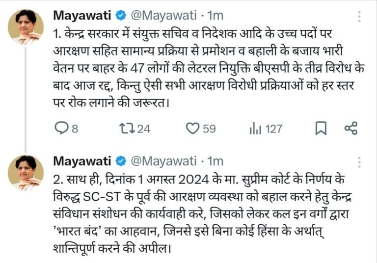 Home»शहर और राज्य»उत्तर प्रदेश»गोरखपुर»BSP अध्यक्ष मायावती ने एक्स पर किया पोस्ट
