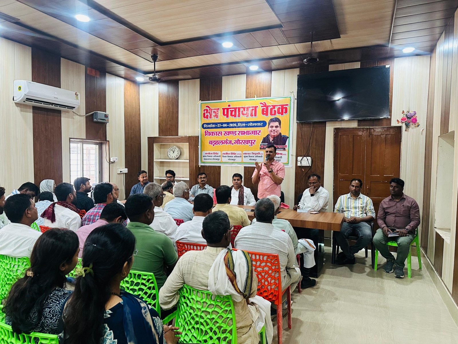 बड़हलगंज/गोरखपुर(निष्पक्ष टुडे) बड़हलगंज विकास खंड क्षेत्र के ग्राम प्रधानो व क्षेत्र पंचायत सदस्यों की बैठक सोमवार को विकास खंड के सभागार में ब्लाक प्रमुख बड़हलगंज रामआशीष राय की अध्यक्षता में संपन्न हुयी। बैठक में वित्तीय वर्ष 2026-27 में होने वाले कार्यो पर चर्चा की गई। उपस्थित जनप्रतिनिधियो ने सीसी रोड, इंटरलॉकिंग, नाली, खड़ंजा, व प्रकाश की समुचित व्यवस्था के मुद्दों पर अपने अपने विचार प्रकट किया। बैठक को संबोधित करते हुए ब्लाक प्रमुख रामआशीष राय ने कहा कि जनप्रतिनिधियो के सहयोग से ही गांवो कि विकास संभव है। उन्होंने क्षेत्र पंचायत सदस्यो को गांवो के विकास में और तेजी लाने का आश्वासन दिया।प्रभारी खंड विकास अधिकारी राजीव तिवारी ने सभी जनप्रतिनिधियो से क्षेत्र पंचायत द्वारा कराये जाने वाले कार्यो का प्रस्ताव मांगा, और काराये जाने वाले कार्यो पर चर्चा किया। सहायक विकास अधिकारी पंचायत संजय पान्डेय ने कहा कि जनप्रतिनिधि के सहयोग के बिना विकास कार्य अपेक्षित है। बैठक में ग्राम प्रधानो ने मनरेगा मजदूरो के बकाया मजदूरी का भी मुद्दा उठाया। इस पर अधिकारीयो ने ग्राम प्रधानो को आश्वस्त किया कि शासन से मजदूरी का पैसा रिलीज हो गया है, अब मजदूरो के खातो में पोस्ट होना शुरू हो जायेगा। बैठक में पशु चिकित्साधिकारी विवेक कुमार, खंड शिक्षा अधिकारी मनोजीत राव, जेई ग्रामीण अभियंत्रण सुनील कुमार श्रीवास्तव आदि ने भी संबोधित किया। बैठक में आये जनप्रतिनिधियो का ब्लाक प्रमुख ने धन्यवाद ज्ञापित किया।इस दौरान क्षेत्र पंचायत सदस्य सूर्यनाथ यादव, योगेश मौर्या, गौरव तिवारी, अखण्ड कुमार, सुमित गौड़, संदीप कुमार, कर्मवीर यादव, यादवेंद्र यादव, लोकेश यादव, चन्दन कुमार, ग्राम प्रधान धीरज राय, मोती चंद, गुलशन यादव, संजय राना, शिवानंद, कुलदीप गौड़ आदि लोग मौजूद थे।