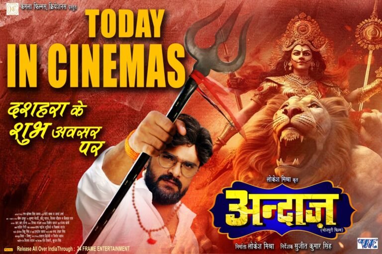 ग्लोबल स्टार खेसारी लाल यादव प्रोड्यूसर लोकेश मिश्रा, डायरेक्टर सुजीत कुमार सिंह की तिकड़ी में बनी भोजपुरी फ़िल्म ‘अंदाज़’ को सिनेमाघरों में रिलीज कर दिया गया है, जिसे बम्पर ओपनिंग मिली है। यह फ़िल्म दशहरा के शुभ अवसर पर सिनेमाघरों में 24 फ्रेम एंटरटेनमेंट द्वारा रिलीज किया गया है। फ़िल्म में मुख्य भूमिका में खेसारीलाल यादव चैलेंजिंग किरदार में दर्शकों का दिल जीत रहे हैं, उनके साथ बिग बॉस फेम अर्शी खान और कन्नड़ फिल्मों की अभिनेत्री सोनिका गौड़ा की अनोखी केमेस्ट्री नजर आ रही है, जो दर्शकों का फुल इंटरटेनमेंट कर रही है।
