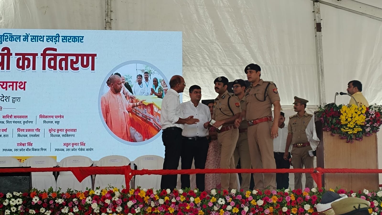 कार्यक्रम की तैयारियों का जायजा लेते कमिश्नर, डीएम, डीआईजी,व पुलिस अधीक्षक कुशीनगर।