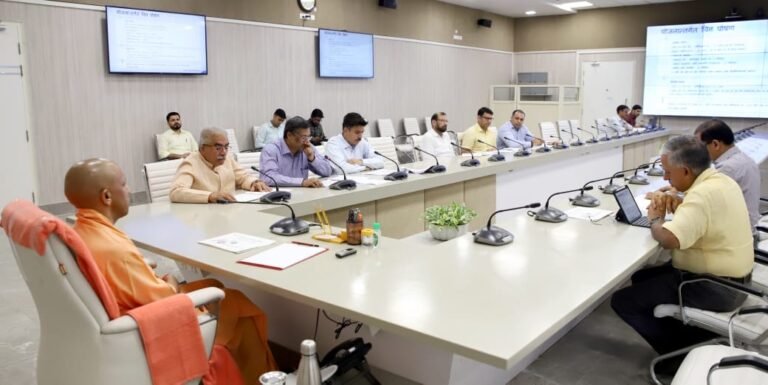 मुख्यमंत्री योगी आदित्यनाथ , दिनांक 08 अगस्त 2024 को अपने सरकारी आवास 5-कालिदास मार्ग, लखनऊ पर मुख्यमंत्री युवा उद्यमी विकास अभियान की बैठक करते हुये।