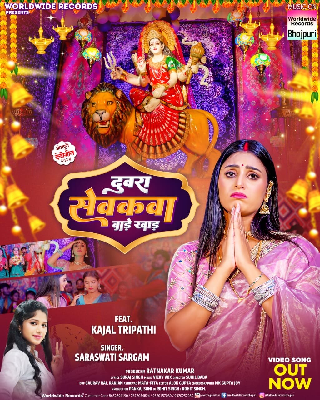 वर्ल्डवाइड रिकॉर्ड्स प्रस्तुत इस देवी गीत ‘दुवरा सेवकवा बाड़े खाड़’ के निर्माता रत्नाकर कुमार हैं। इस गीत को सिंगर सरस्वती सरगम ने भक्ति भाव में गाया है। इसके वीडियो में एक्ट्रेस काजल त्रिपाठी ने माता की भक्तिमय अदाकारी किया है। इस गाने को गीतकार सूरज सिंह ने लिखा है, जबकि संगीतकार विक्की वॉक्स ने मधुर संगीत दिया है। मिक्स मास्टर अकिंत अहीर ने किया है। वीडियो डायरेक्टर सुनील बाबा, कोरियोग्राफर एमके गुप्ता जॉय, डीओपी गौरव राय एंड रंजन, एडिटर आलोक गुप्ता हैं। डीआई रोहित सिंह, प्रोडक्शन पंकज सोनी ने किया है। इस गीत का ऑल राइट वर्ल्डवाइड रिकॉर्ड्स के पास है।