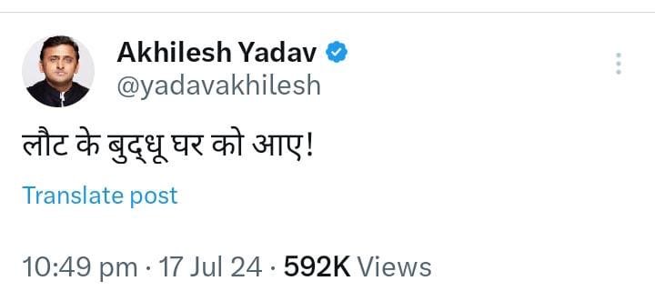 डिप्टी सीएम केशव मौर्य के सौजन्य से बीजेपी में लखनऊ दिल्ली के बीच चार दिन चली खींचातानी के क्रम में बुधवार देर शाम को “बागी अभियान के फुस्स हो जाने के बाद” वीर योद्धा खाली हाथ लखनऊ हवाई अड्डे पर उतरे और सरकारी आवास कालीदास मार्ग रवानगी के आधे घंटे बाद समाजवादी पार्टी मुखिया सांसद ने नाम का उल्लेख किये बगैर X पर मेसेज चेप डाला….इस सब के बीच मारे गये गुलफाम (चौधरी भूपेंद्र सिंह )!