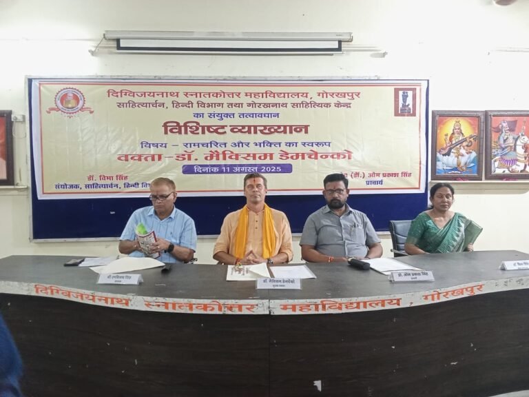 गोरखपुर । दिग्विजयनाथ पी.जी. कॉलेज, गोरखपुर के हिन्दी विभाग एवं गोरखनाथ साहित्यिक केन्द्र के संयुक्त तत्वावधान में ‘रामचरित और भक्ति का स्वरूप’ विषय पर एक विशिष्ट व्याख्यान का आयोजन किया गया।