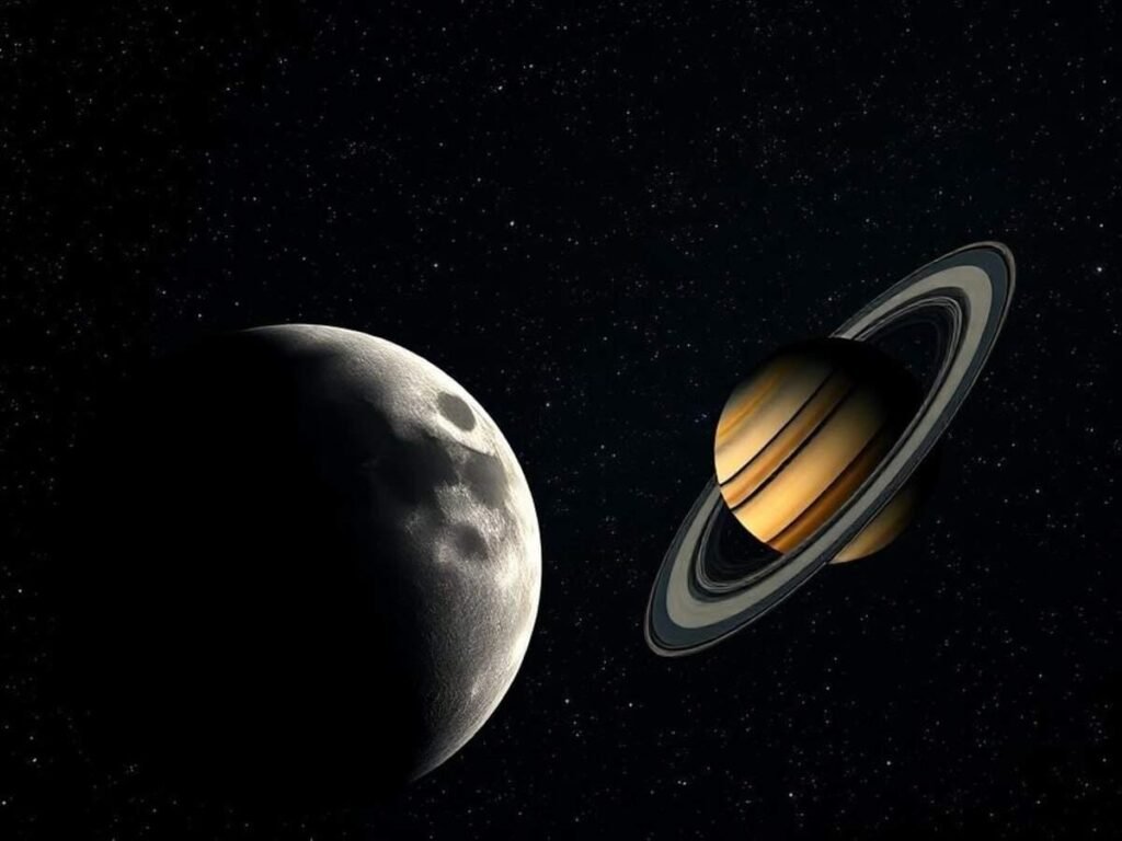 आकाश में अद्भुत संगम: 20 फरवरी 2026 को चंद्रमा और शनि ग्रह होंगे एक ही राइट एसेन्शन (समकोण आरोहण) पर । घटित होगा युति का दृश्य। और देख सकते हैं अर्थशाइन भी।