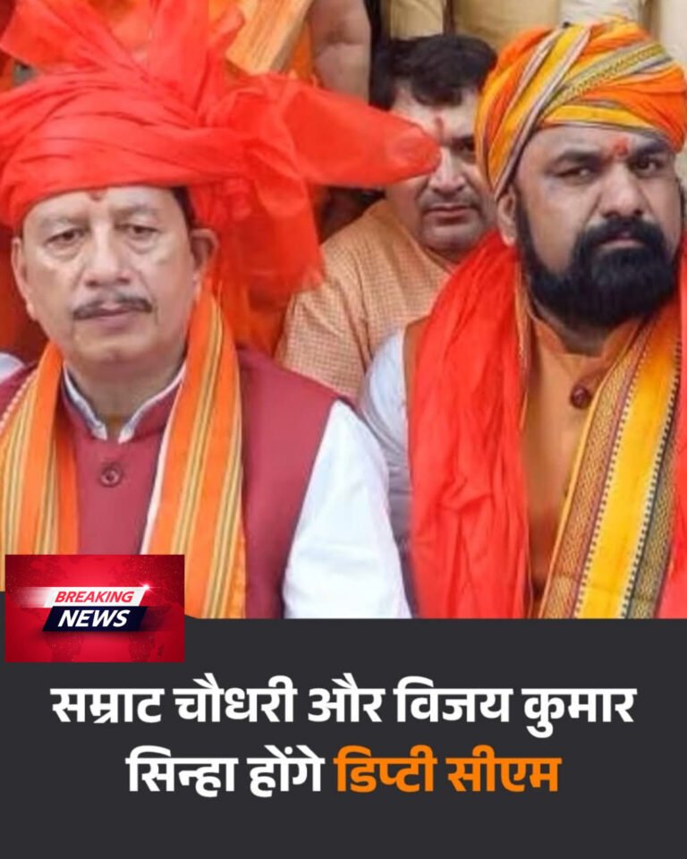 बीजेपी विधायक दल की बैठक में बड़ा फैसला हुआ है। सम्राठ चौधरी को बीजेपी विधायक दल का नेता और विजय कुमार सिन्हा को उपनेता चुना गया है। दोनों एक बार फिर बिहार की नई सरकार में डिप्टी सीएम होंगे।