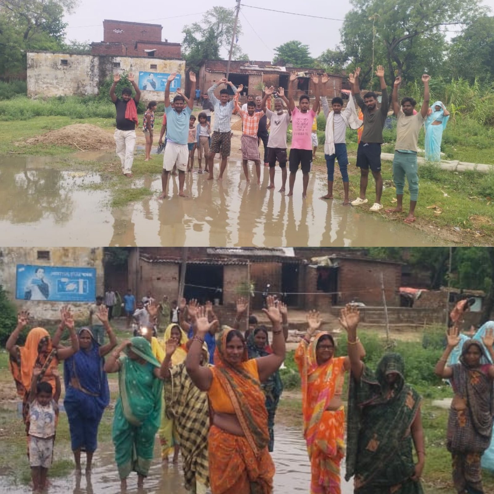 बिगहि की दलित बस्ती में बारिश का पानी भरने से ग्रामीण परेशान, प्रदर्शन