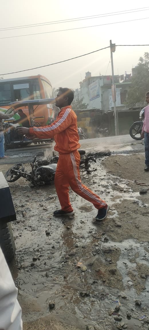 Home»न्यूज़»बाइक मे लगी आग, बाल बाल बचा सवार