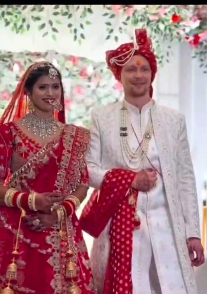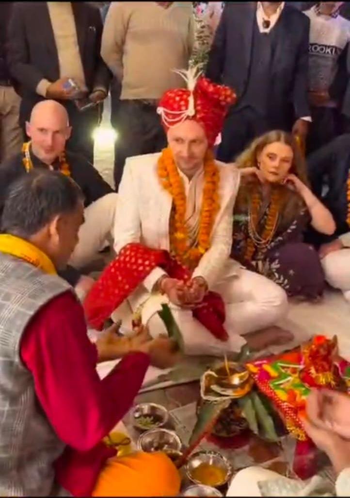 दूल्हे के साथ जर्मनी से आए परिवार के 16 सदस्य, भारतीय रंग और संस्कृति में पूरी तरह रंगे नजर आए।