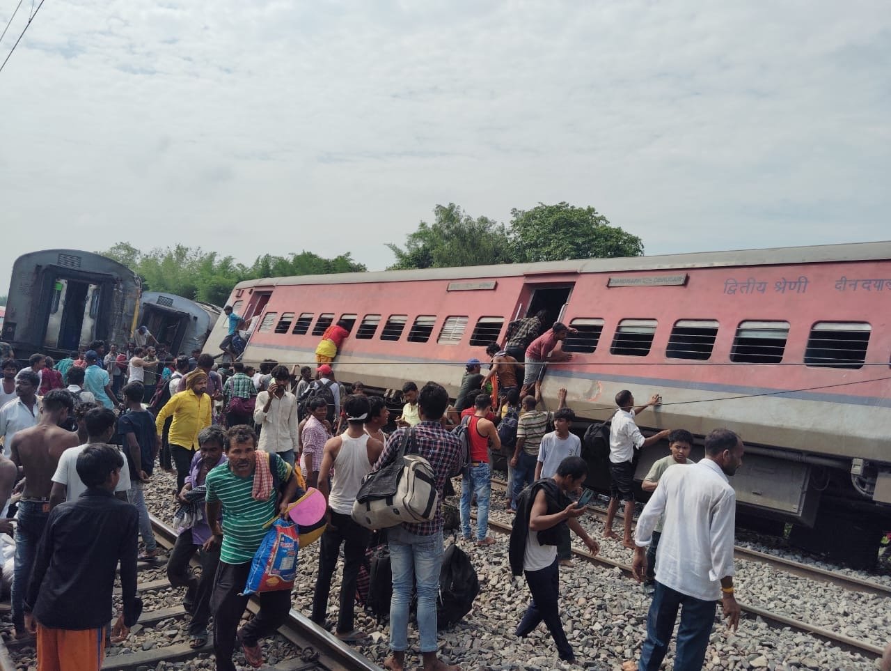 गोंडा में चंडीगढ़ एक्सप्रेस के 5 डिब्बे डिरेल ,चंडीगढ़ से गोरखपुर जाते ट्रेन के डिब्बे डिरेल