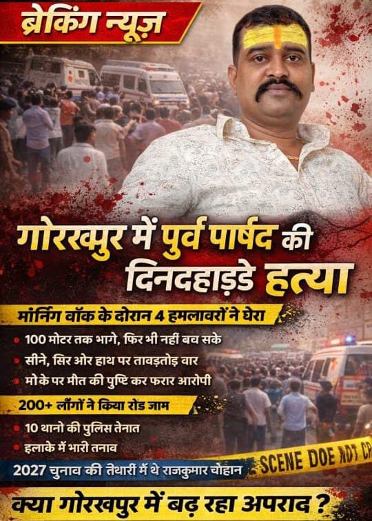 गोरखपुर में पूर्व पार्षद राजकुमार चौहान की दिनदहाड़े हत्या, मॉर्निंग वॉक के दौरान 4 हमलावरों ने घेरा
