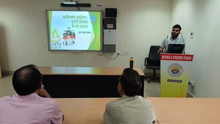 दीनदयाल उपाध्याय गोरखपुर विश्वविद्यालय , गोरखपुर के रक्षा एवं स्त्रातजिक अध्ययन विभाग के तत्वाधान में ख़ालिस्तान आन्दोलन: पुरानी समस्या के नए आयाम विषय पर शनिवार संगोष्ठी का आयोजन किया गया।