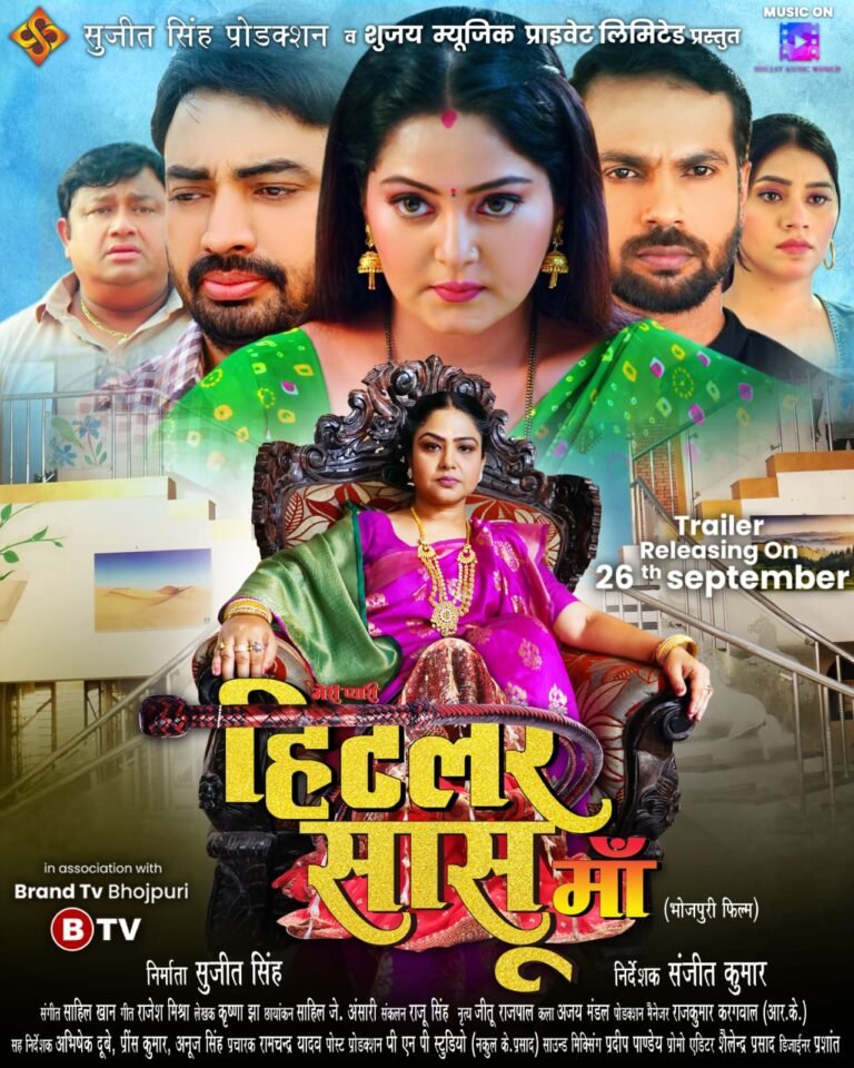 भोजपुरी सिनेमा की मोस्ट पॉपुलर अदाकारा अंजना सिंह, सिनेस्टार संजीव मिश्रा, सुजीत सिंह, नम्रता सिंह और बीना पांडेय के शानदार अभिनय से सजी भोजपुरी फिल्म ‘हिटलर सासू माँ’ का फर्स्ट लुक सोशल मीडिया में जारी किया गया है। इस फिल्म का ट्रेलर आगामी 26 सितंबर को सुबह 6 बजे शुजय म्यूजिक वर्ल्ड के ऑफिसियल यूट्यूब चैनल पर रिलीज किया जाएगा। सास बहू की नोकझोंक एवं सामाजिक मुद्दों पर आधारित फिल्म ‘हिटलर सासू माँ’ के फर्स्ट लुक की काफी सराहना की जा रही है। इस फिल्म के फर्स्ट लुक पोस्टर में दिखाया गया है कि एक सिंहासन पर बीना पांडेय सास के लुक में बैठी हुई हैं। वहीं सिर के बीच में अंजना सिंह बहू के लुक में अलग तेवर में नजर आ रही हैं। उनके एक बगल में अभिनेता संजीव मिश्रा और दूसरी तरफ अभिनेता सुजीत सिंह दिख रहे हैं। साथ ही अभिनेता रोहित सिंह मटरू और अभिनेत्री नम्रता सिंह भी दिखाई दे रहे हैं। जैसा फ़िल्म का टाइटल है, वैसा ही फिल्म के फर्स्ट लुक का डिजाईन भी बनाया गया है, जिसकी फिल्मी गलियारों में खूब सराहना की जा रही है।