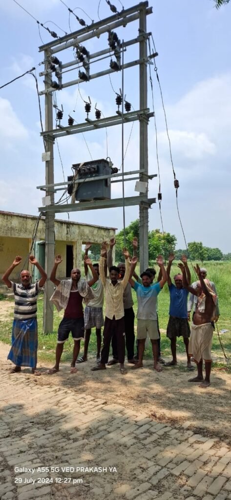 जे ई की मनमानी से अक्रोशित हैं गडरी अनुसूचित बस्ती के लोग गोला:विद्युत उपकेंद्र पकड़ी के अन्तर्गत आने वाले ग्राम सभा गडरी अनुसूचित बस्ती के लोग उपकेन्द्र जे ई के मनमाने रवैये से आक्रोशित हैं।ग्रामीणों ने सोमवार को अपने टोले में लगे ट्रांसफार्मर के पास धरना प्रदर्शन कर जेई के खिलाफ आक्रोश जताया। ____धरना प्रदर्शन करने वाले अनुसूचित टोले के राम बहाल, हरिलाल,जगरनाथ,सुदर्शन, कृपाल, मंटू,धर्मेंद्र, रंजीत,सुबास, जगलाल,द्वारिका लाल आदि का कहना है कि हमारा 40 घर का टोला है। सरकार की नई योजना के तहत हमारे टोले में खम्भों पर उपभोक्ताओं को कनेक्शन देने के लिए 2020 में चार तार की केबिल बिछाई गई है लेकिन जे ई की मनमानी के चलते कनेक्शन नहीं दिया गया। 40 वर्ष पूर्व लगा तार जर्जर हो गया है जो बार बार टूट कर गिरता रहता है। लाइन फाल्ट होती रहती है। फाल्ट लाइन तभी ठीक होता है जब उनको पहले सुविधा शुल्क पहुँचाया जाता है। इस उमस भरी गर्मी में हम लोगों का जीना हराम हो गया है। केबल से कनेक्शन मिल जाता तो हमेशा लाइन फाल्ट नहीं होता। इस सम्बंध में जेई मंशा राम का कहना है कि जिस समय केबिल बिछा इन लोगों को उसी समय कनेक्शन ले लेना चाहिए था। यह बात अब मेरे संज्ञान में आया है । पता लगा कर समस्या का समाधान करवाता हूं।