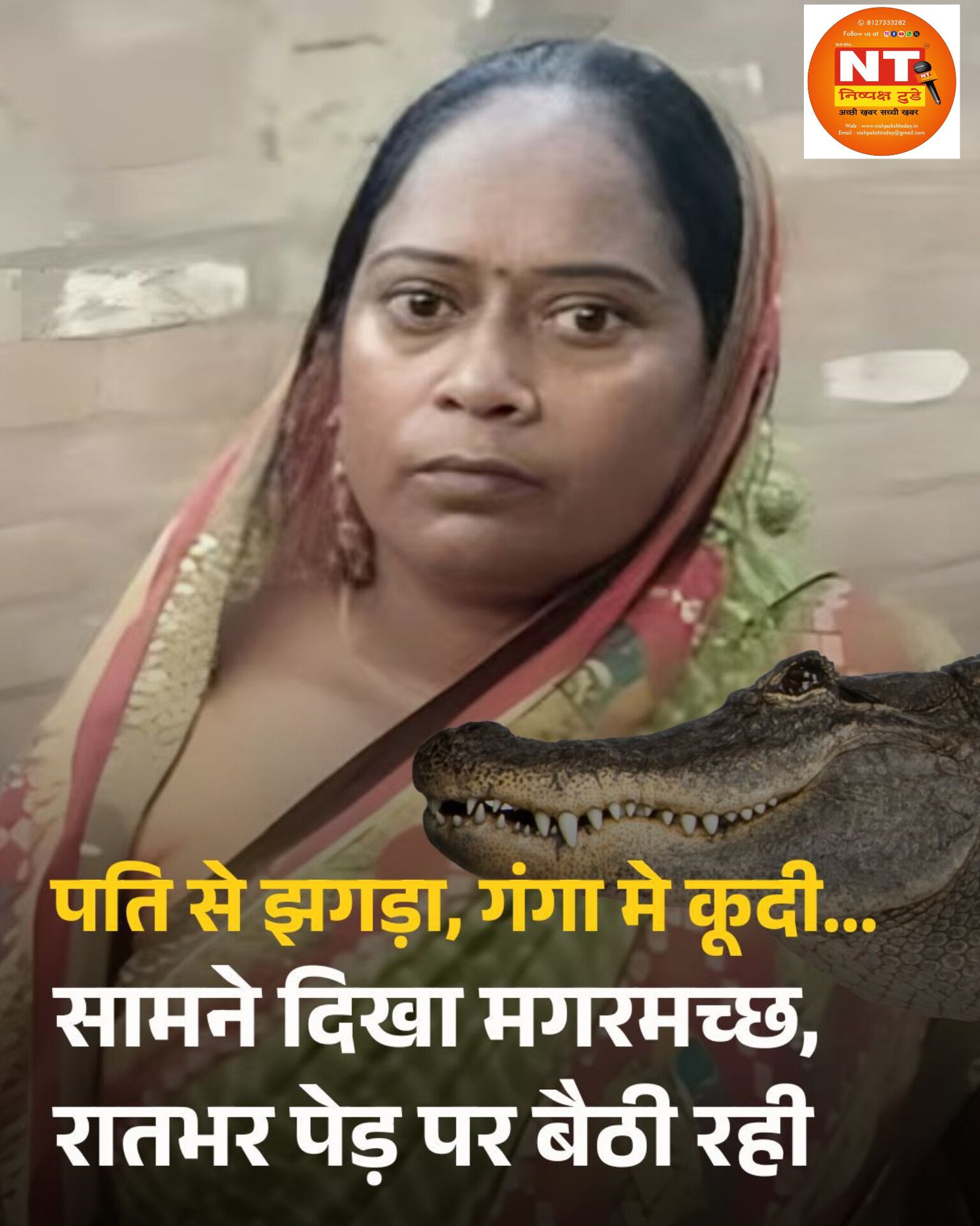 पति से झगड़कर गंगा में कूदी, सामने दिखा मगरमच्छ तो रातभर पेड़ पर बैठी रही