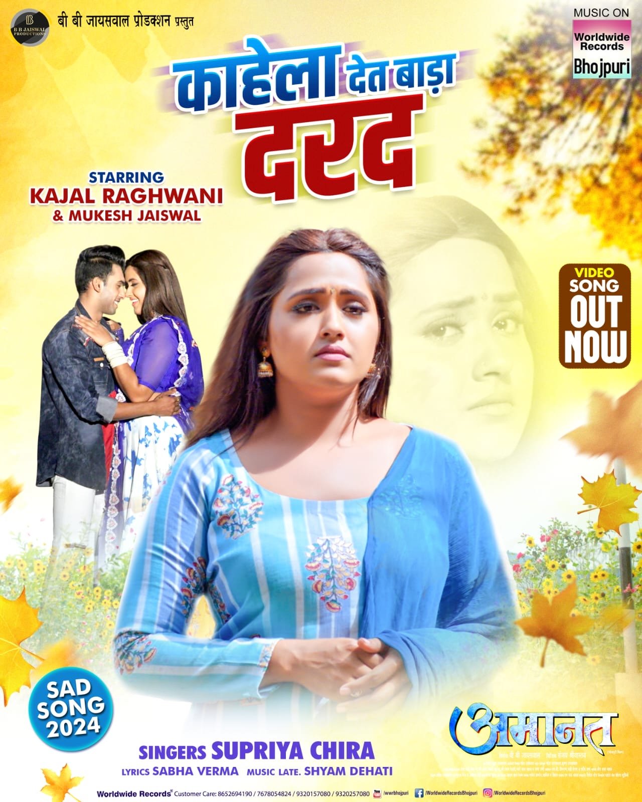 भोजपुरी सिनेमा की सुपरस्टार एक्ट्रेस काजल राघवानी और एमएक्स टकाटक स्टार अभिनीत भोजपुरी फ़िल्म ‘अमानत’ का सैड सांग रिलीज हो गया है। इस गाने को सिंगर सुप्रिया चिरा ने बुलंद आवाज में गाया है, जो परदेसी पति से दूर रह रही पत्नी का वियोग भाव को प्रकट कर रही है। वहीं इसके वीडियो में काजल राघवानी और मुकेश जायसवाल की केमेस्ट्री बड़ी ही लाजवाब दिख रही है। यह सैड सांग ‘काहेला देत बाड़ा दरद’ वर्ल्डवाइड रिकार्ड्स भोजपुरी के ऑफिसियल यूट्यूब चैनल पर देखा जा सकता है। इसके वीडियो में काजल राघवानी बिल्कुल साधारण सलवार शूट पहने और मरून कलर की ओढ़नी लिए सैड मूड में दिख रही हैं। वह पति से दूरी के वियोग में गमज़दा हैं। उनके नैनों से आंसुओं की धार बह रही है। वह मोबाइल पर फ़ोन करके अपने परदेसी पिया को अपने दिल का हाल बयाँ कर रही हैं। दूसरी तरफ फ़ोन पर पति के रूप में मुकेश जायसवाल भी खूबसूरत पत्नी से दूर रहने के गम में दुखी दिख रहे हैं।