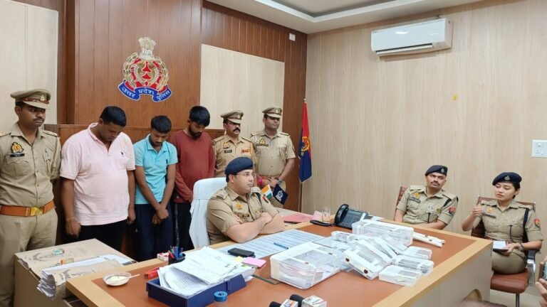 गोरखपुर। कैंट पुलिस ने ऐसे गैंग का खुलासा किया है जो गरीब मजदूर को काम दिलाने के बहाने उन्हें बंधक बनाकर लूटपाट की घटना कारित करते थे इस मामले में कैंट पुलिस ने तीन शातिर बदमाशों को गिरफ्तार करने में सफलता हासिल किया है पुलिस ने उनके पास से आठ लूट का मोबाइल 82050 रुपये नगद और घटना में प्रयुक्त चार पहिया वाहन सहित अन्य दस्तावेज को बरामद किया है। घटना का खुलासा सिविल लाइन स्थित एसएसपी कार्यालय पर एसएसपी डॉक्टर गौरव ग्रोवर किया। खुलासे के दौरान एसपी सिटी कृष्ण कुमार विश्नोई क्षेत्राधिकारी कैंट अंशिका वर्मा मौजूद रही।एसएसपी डॉक्टर गौरव ग्रोवर ने बताया कि यह गोरखपुर के रानीडीहा में किराए का कमरा लेकर घटना को अंजाम दिया करते थे पकड़े गए गैंग का मुख्य सरगना लक्ष्मीकांत सिंह उर्फ राणा सिंह जो गाजीपुर का रहने वाला है इसके साथी गुलरिया क्षेत्र के अंगद कुमार और सिकरीगंज के वासुदेव शर्मा है जिन्हें गिरफ्तार करके आज सलाखों के पीछे भेजा जा रहा है अब तक पुलिस को पांच लोगों ने शिकायत किया है उनकी तहरीर की आधार पर मुकदमा दर्ज किया गया है पकड़े गए आरोपी जलसाजी के दौरान अपने आप को क्राइम ब्रांच का इंस्पेक्टर बात कर भी वसूली करते थे यह लोगो को काम दिलाने के नाम पर उन्हें बंधक बनाते थे और मारपीट कर उनका नगदी मोबाइल फोन लूट लेते थे गूगल पे और फोन पे के माध्यम से डरा धमका कर खाते में पैसा मांगते थे अब तक इन लोगों ने 15 घटनाओं को अंजाम दे चुके हैं।