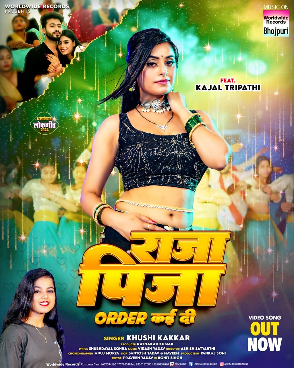 वर्ल्डवाइड रिकॉर्ड्स प्रस्तुत लोकगीत ‘राजा पिज़्जा ऑर्डर कई दी’ के निर्माता रत्नाकर कुमार हैं। इस गीत को सिंगर खुशी कक्कड़ ने गाया है। इसके वीडियो में एक्ट्रेस काजल त्रिपाठी ने अदाकारी किया है। इस गाने को गीतकार शुभदयाल सोहरा ने लिखा है, जबकि संगीतकार विकाश यादव ने मधुर संगीत दिया है। वीडियो डायरेक्टर आशीष सत्यार्थी, डीओपी संतोष यादव एंड नवीन, कोरियोग्राफर अनुज मौर्या, एडिटर प्रवीण यादव हैं। डीआई रोहित सिंह, प्रोडक्शन पंकज सोनी ने किया है। इस गीत का ऑल राइट वर्ल्डवाइड रिकॉर्ड्स के पास है।