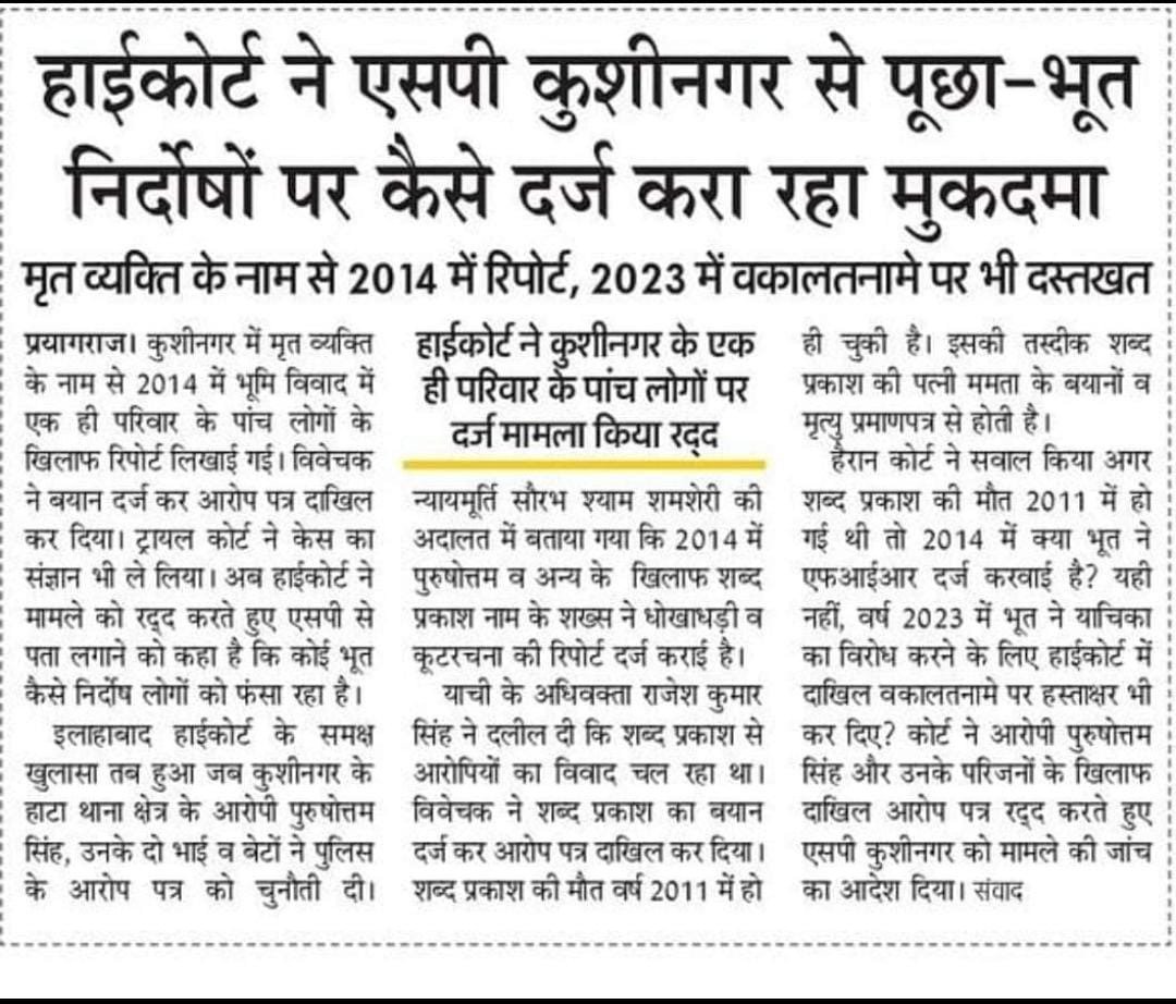 भूत की गवाही के आधार पर ही लगी न्यायालय में चार्जशीट, मामला हाईकोर्ट पहुंचा तो पुलिस की खुल गयी पोल.