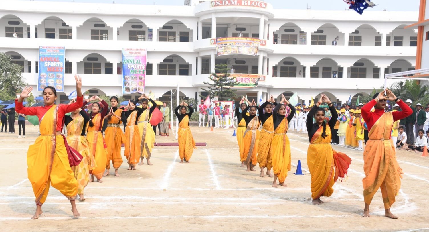 गोला।लक्ष्मी प्रसाद मेमोरियल पब्लिक स्कूल गोला बाजार में चल रहे वार्षिक खेलकूद उत्सव के चार दिवसीय आयोजन का आज प्रथम दिवस का शुभारंभ हुआ । कार्यक्रम का प्रारंभ गोला बाजार के उपजिलाधिकारी व कार्यक्रम के मुख्य अतिथि राजू कुमार विशिष्ट अतिथि तहसील गोला के तहसीलदार बृजमोहन शुक्ल खण्ड शिक्षाधिकारी उदय शंकर राय ने दीप प्रज्जवलित करके किया। विद्यालय के संरक्षक गिरधारी लाल स्वर्णकार प्रबंधक भागीरथी प्रसाद स्वर्णकार प्रबंध निदेशक अमरनाथ वर्मा के गौरवमयी उपस्थिति में खेल उत्सव का प्रारम्भ हुआ। विद्यालय की छात्राओं द्वारा सरस्वती वंदना एवं स्वागत गीत प्रस्तुत किया गया, तथा छात्रों द्वारा खेल मशाल जलाकर खेल भावना से खेल खेलने का शपथ भी लिया गया