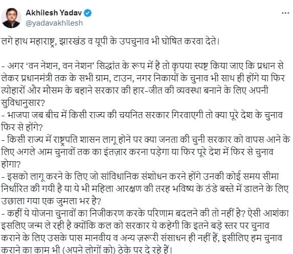 ‘वन नेशन वन इलेक्शन’ पर अखिलेश यादव का तंज