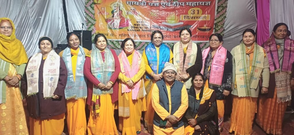 गोरखपुर: अखिल विश्व गायत्री परिवार, शांतिकुंज हरिद्वार के सतत मार्गदर्शन में महिला मंडल विकास नगर, बरगदवा द्वारा बड़ा पार्क में प्रत्येक वर्ष की भांति इस वर्ष भी जन-जन के कल्याण, सुख, शांति एवं समृद्धि की भावना के साथ पंचकुंडीय गायत्री महायज्ञ एवं दीपयज्ञ का दिव्य एवं भव्य आयोजन किया गया।