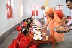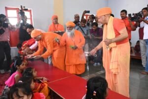 मुख्यमंत्री योगी आदित्यनाथ बतौर गोरक्षपीठाधीश्वर शुक्रवार को गोरखनाथ मंदिर में शारदीय नवरात्र की महानवमी तिथि में कन्या पूजन के बाद मीडियाकर्मियों से बातचीत कर रहे थे। उन्होंने कहा कि देश-दुनिया में रहने वाले सनातन धर्मावलंबी वर्ष में दो बार शारदीय और वासंतिक नवरात्र में जगतजननी मां भगवती दुर्गा के नौ स्वरूपों के पूजन व अनुष्ठान के कार्यक्रम से श्रद्धा, उल्लास व उमंग से जुड़ते हैं। सनातन धर्म की पर्व और त्योहार से जुड़ी समृद्ध परंपरा सबका ध्यान आकर्षित करती है। आज शारदीय नवरात्र की नवमी तिथि पर सभी मनोकामनाओं को पूर्ण करने वाली मां सिद्धिदात्री के स्वरूप के पूजन के साथ कन्या पूजन का अनुष्ठान हो रहा है। वह सौभाग्यशाली है कि गोरक्षपीठ की पवित्र परंपरा के अनुसार उन्हें भी कन्या पूजन का अनुष्ठान करने का अवसर प्राप्त हुआ है।