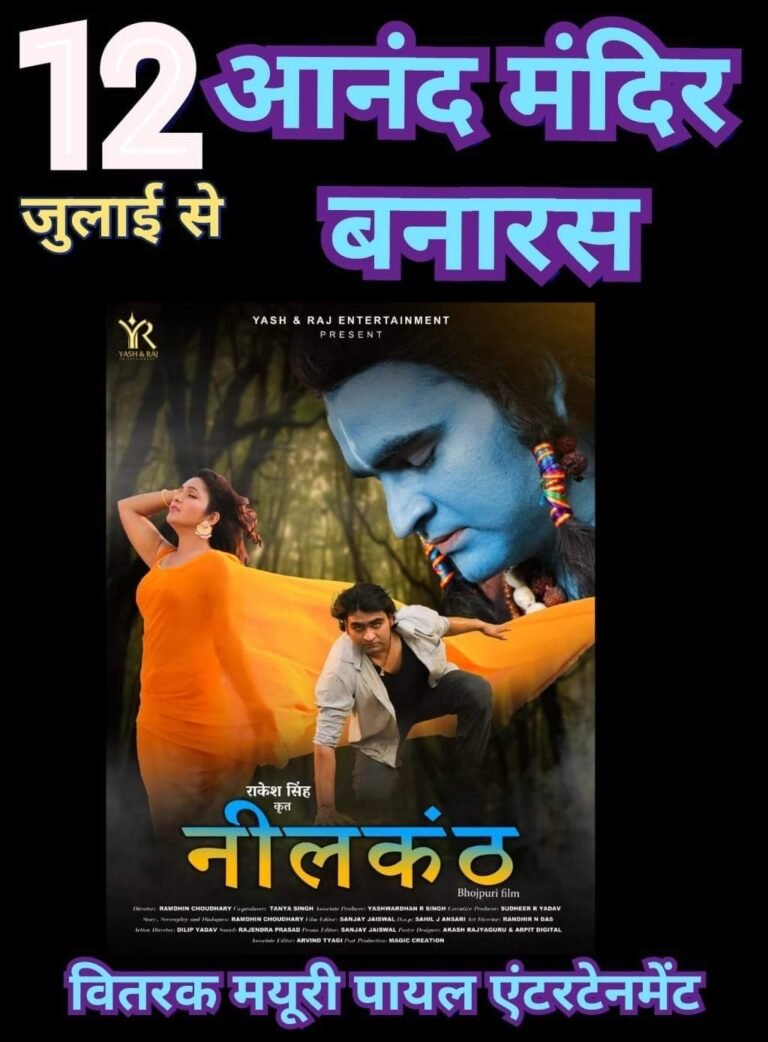 यश एंड राज एंटरटेनमेंट बैनर के तले निर्मित की गई चंबल ब्वॉय रवि यादव अभिनीत भोजपुरी की पहली सुपर हीरो वाली फिल्म ‘नीलकंठ’ 12 जुलाई से आनन्द मंदिर वाराणसी, मानसरोवर प्रयागराज, हीरा टॉकीज आगरा आदि सिनेमाघरों में रिलीज हो रही है। इसी दौरान रवि यादव 12 जुलाई को दोपहर 12 बजे और 3 बजे के शो में दर्शकों के साथ फ़िल्म देखेंगे और सभी से रूबरू होंगे। इस फ़िल्म को लेकर रवि यादव काफी उत्साहित हैं। इसके पहले वे कुशीनगर के साहू चित्र मंदिर फाजिल नगर में दर्शकों से रूबरू हुए थे, जहाँ पर दर्शकों का उन्होंने दिल जीत लिया है। उन्हें लोगों का भरपूर प्यार मिला है।