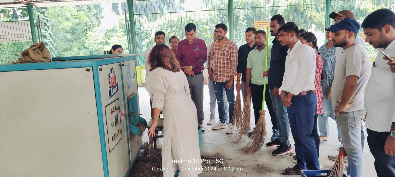 2 अक्टूबर, गोरखपुर: महात्मा गांधी एवं लाल शास्त्री जयंती के अवसर पर स्वच्छता ही सेवा अभियान के अंतर्गत जीरो वेस्ट सेन्टर पर दी.द.उ गोरखपुर विश्वविद्यालय के स्वयं सेवकों के द्वारा श्रमदान किया गया तथा तत्पश्चातवनस्पति विज्ञान विभाग की असि.प्रो.एवं कार्यक्रम अधिकारी डॉ. स्मृति मल्ल ने जीरो वेस्ट केंद्र की पूरी प्रणाली को स्वयंसेवकों को समझाया। परिसर के वेस्ट मैनेजमेंट के क्रम में डा. मल्ल ने बताया की विश्वविद्यालय परिसर से सूखे घास व पत्तो को इकट्ठा करके केंद्र पर लाया जाता है तथा उसे मशीन में डालकर छोटे-छोटे टुकड़े में काट दिया जाता है, तत्पश्चात उसमें बैक्टीरियल पाउडर डालकर केंद्र पर बने हौजों में 15 से 20 दिनों के लिए डाल दिया जाता है, इस प्रकार ये बेकार पड़े घास व पत्ते उर्वरक में बदल जाते हैं और उस उर्वरक इसका प्रयोग आर्गेनिक फार्मिंग हेतु किया जाता है।