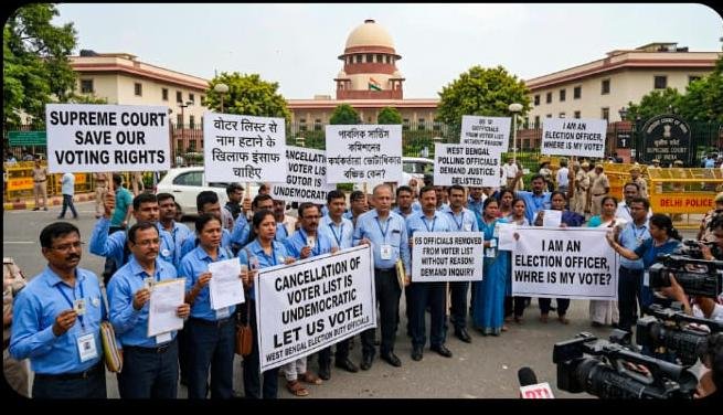 कोलकाता/नई दिल्ली। पश्चिम बंगाल में चुनाव ड्यूटी पर तैनात करीब 65 चुनाव अधिकारियों के नाम मतदाता सूची से हटाए जाने का मामला अब सुप्रीम कोर्ट तक पहुंच गया है।