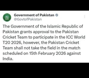 पाकिस्तान ने ICC के साथ BCCI को तगड़ा झटका दिया , क्योंकि वह भारत के साथ नहीं खेल रहा है, बाकी देशों के साथ खेलने को तैयार है। आईसीसी और जय शाह को खास तौर पर तमाचा है। पाकिस्तान ने x पर जानकारी दी।