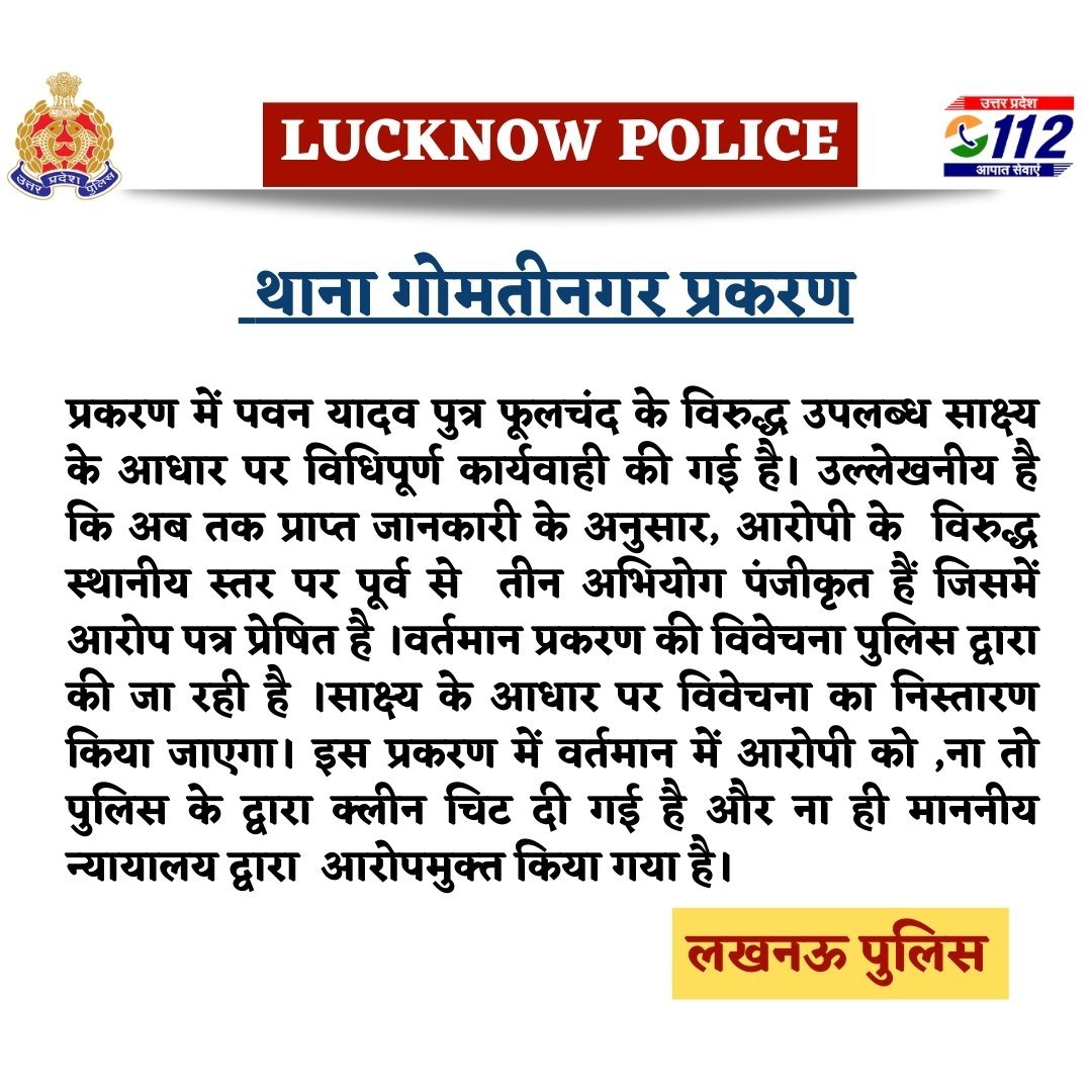 लखनऊ : पवन यादव प्रकरण में लखनऊ पुलिस ने जारी किया बयान