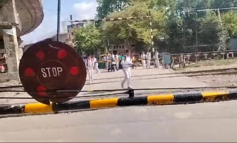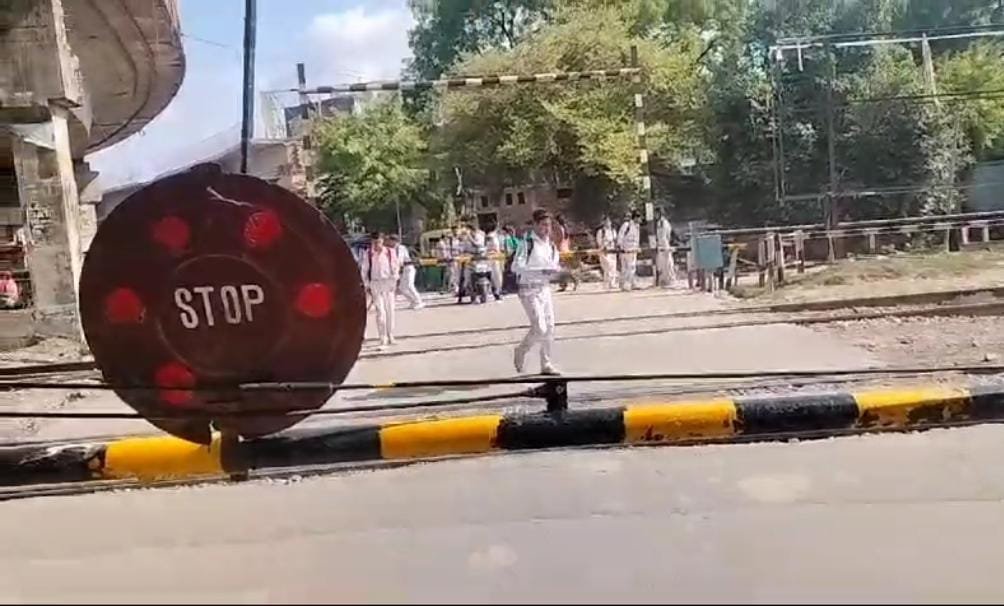 रेलवे प्रसाशन को ठेंगा दिखाते स्कूल के बच्चे