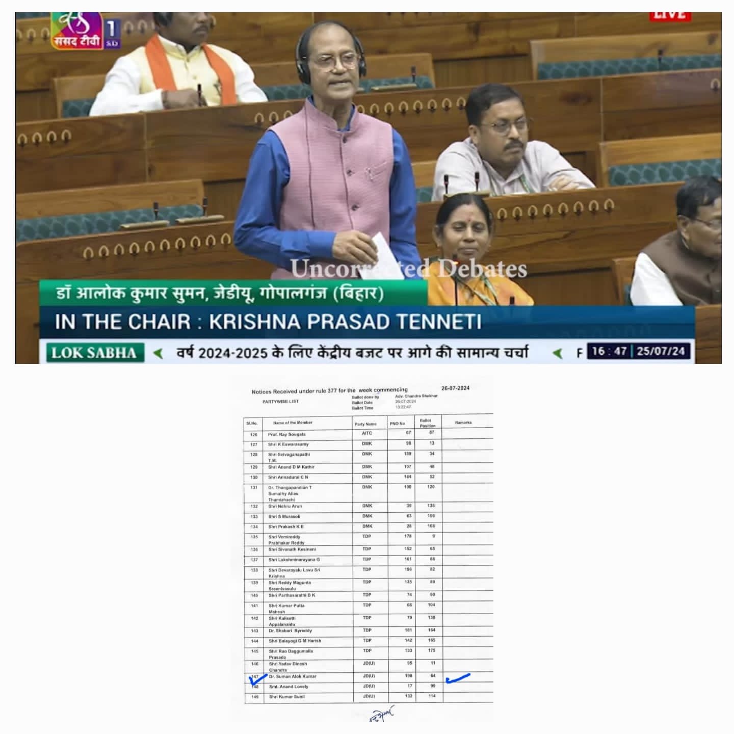सदन में उठा प्रसिद्ध थावे दुर्गा मंदिर के विकास की बात गोपालगंज – जदयू सांसद डॉ. आलोक कुमार सुमन ने प्रसिद्ध थावे दुर्गा मंदिर स्थल को प्रसाद योजना में शामिल करने की मांग। लोकसभा में नियम 377 के तहत सदन पटल के माध्यम से पर्यटन मंत्रालय से की मांग। प्रसाद योजना में शामिल होने से रोजगार के साथ पर्यटन को मिलेगा बढ़ावा।