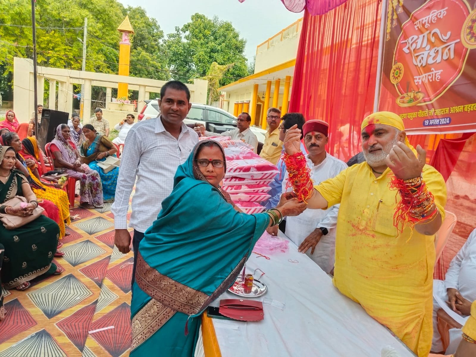 गोला।भाई-बहन के बीच पवित्र बंधन के उत्सव में विधायक राजेश त्रिपाठी मित्र मंडल की ओर से सोमवार को रक्षाबंधन के मौके पर दोपहर 3 बजे पवहारी महाराज कुटी पर पर कार्यक्रम आयोजित किया।