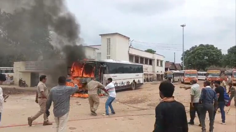 शॉर्ट सर्किट से गोरखपुर बस अड्डे पर खड़ी जनरथ में लगी आगः 5 यात्री थे सवार, कूदकर बचाई जान