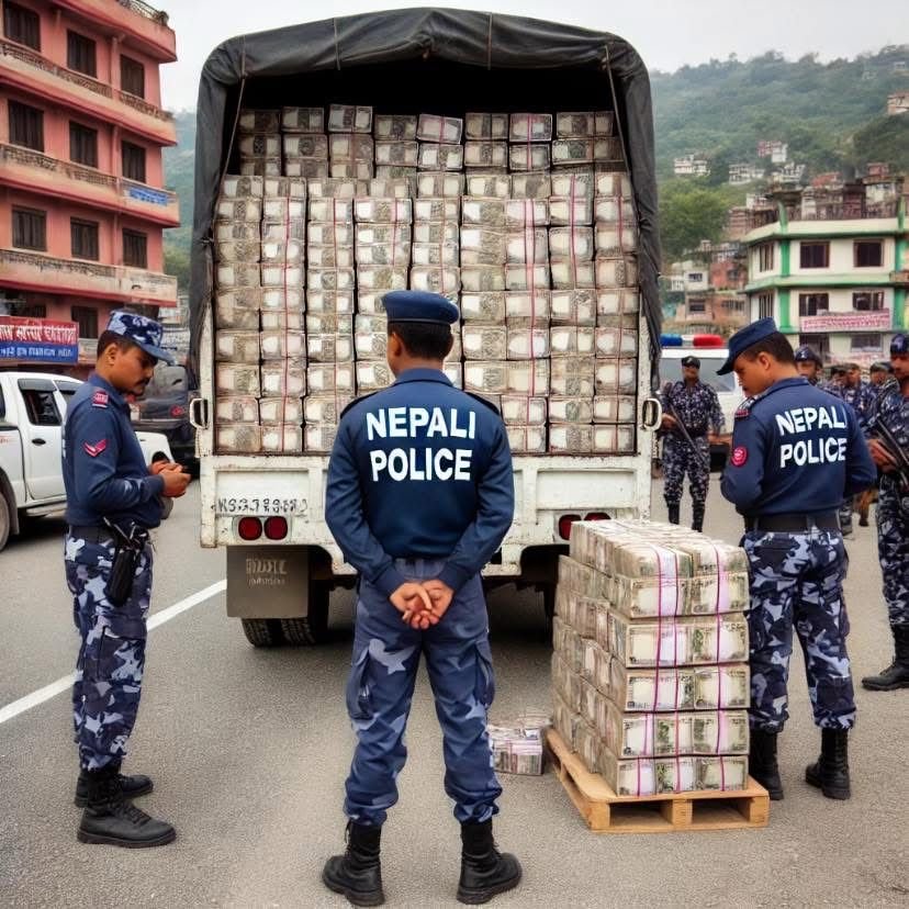 काठमांडू! नेपाल पुलिस की विशेष टीम ने सीआईडी के एसएसपी रमेश बस्नेत के नेतृत्व में आज सुबह काठमांडू के टोखा क्षेत्र से एक ट्रक (ना 7 ख/1652) में नेपाली 1000 के नोटों सहित अमेरिकी डॉलर और यूरोपीय डॉलर में करीब 25 करोड़ अवैध रूप से रखा हुआ बरामद किया है। इस सिलसिले में पुलिस ने ट्रक चालक समेत दो लोगों को हिरासत में ले लिया है और उनसे पूछताछ जारी है। रूपया किसका है शुरुआती दौर में अभी कुछ पता नहीं चल पाया है। पर सूत्रों के हवाले से खबर मिली है कि प्रथम दृष्टया बरामद रूपया सोना तस्करी या हवाला का प्रतीत होता है। पुलिस की विशेष टीम ने जांच शुरू कर दी है।