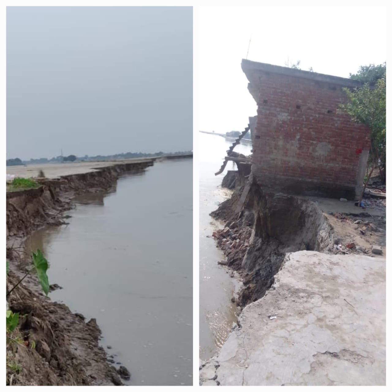 कटान के मुहाने पर अजय पाल सूरज पाल झब्बू साहनी की मकान खड़ी हैं नदी की धारा इनके नीव पर टकरा रही हैं जो कभी भी कटान में समाहित हो सकती हैं ।