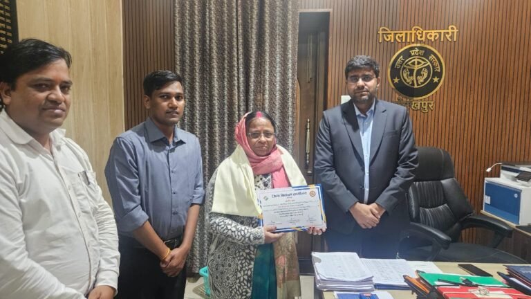 गोरखपुर। विशेष प्रगाढ़ पुनरीक्षण (SIR) कार्यक्रम के अंतर्गत मतदाता सूची को अधिक सटीक और डिजिटल स्वरूप में तैयार करने के लिए जिले में तेजी से कार्य किया जा रहा है। इसी क्रम में आज जिला निर्वाचन अधिकारी/जिलाधिकारी दीपक मीणा ने गोरखपुर ग्रामीण विधानसभा की बीएलओ श्रीमती निर्मला पाण्डेय को उनके बूथ के शत-प्रतिशत मतदाता डिजिटाइजेशन का कार्य पूर्ण करने पर सम्मानित किया।